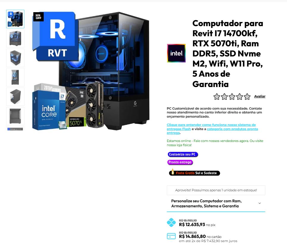 Além disso, conforme os projetos BIM evoluem, com múltiplas disciplinas, famílias detalhadas e vínculos externos, o Revit passa a exigir muito mais consistência de desempenho do que potência bruta isolada. Nesse cenário, uma configuração com Intel i7 14700KF, RTX 5070 Ti e memória DDR5 não apenas resolve travamentos, como também cria uma base sólida para crescimento profissional.